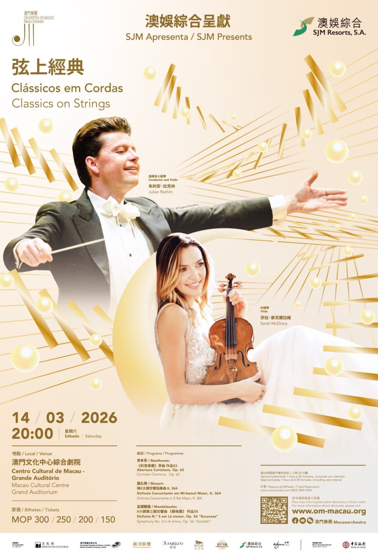 《弦上經典》演奏會將於2026年3月14日(星期六)舉行,活動詳情如下: